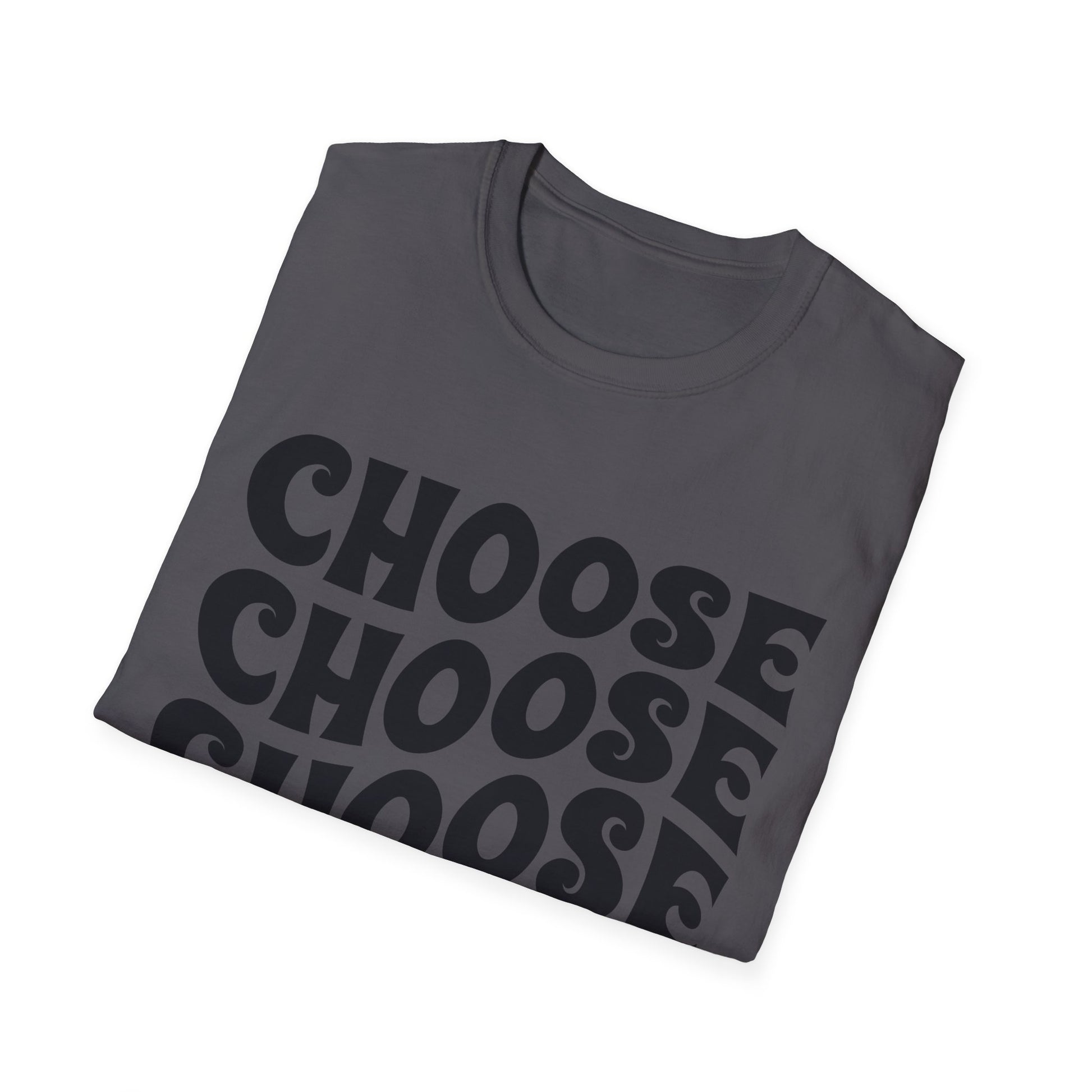 This soft, breathable tee carries a calm, uplifting message in a bold, hand-lettered style. The front reads “CHOOSE CHOOSE CHOOSE JOY” with small heart accents and a subtle Romans 15:13 reference, giving it a quiet, faith-centered warmth. Lightweight ring-spun cotton and a classic crew fit make it easy to layer or wear on its own. The smooth print sits cleanly on the chest, so the message reads clearly whether you’re out for coffee, volunteering at your community group, or meeting friends after service. Wear it when you want to anchor your day in intention and share a gentle reminder with those around you.